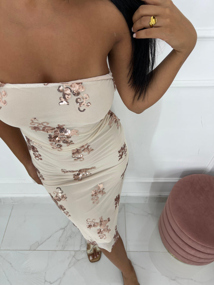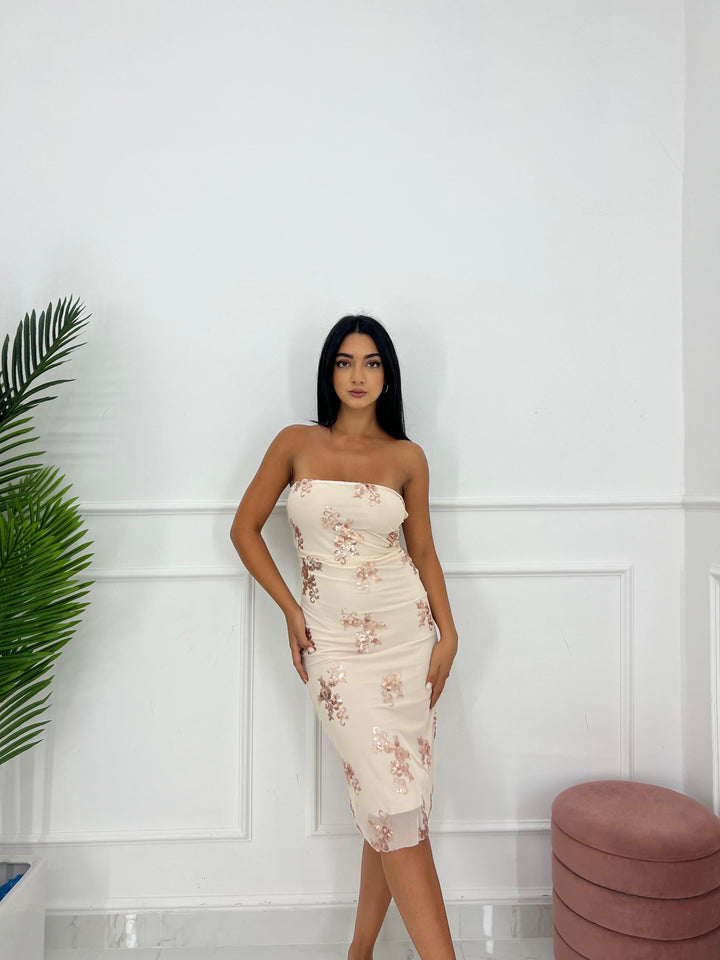 ABITO A FASCIA FODERATO CON PAILLETTES A DETTAGLIO