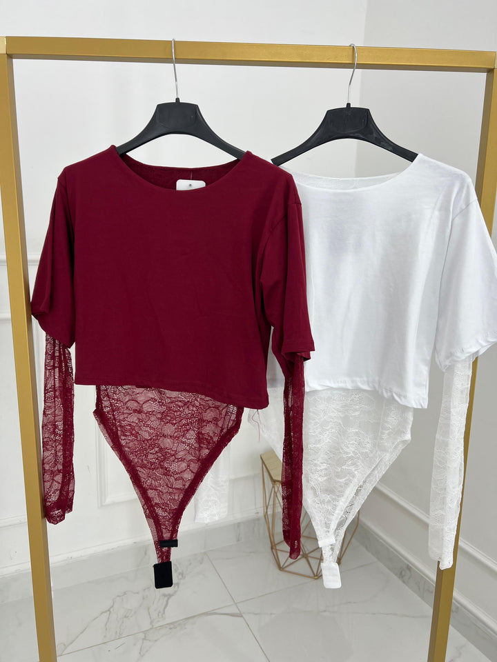 BODY SHIRT CROP E PIZZO UNITO