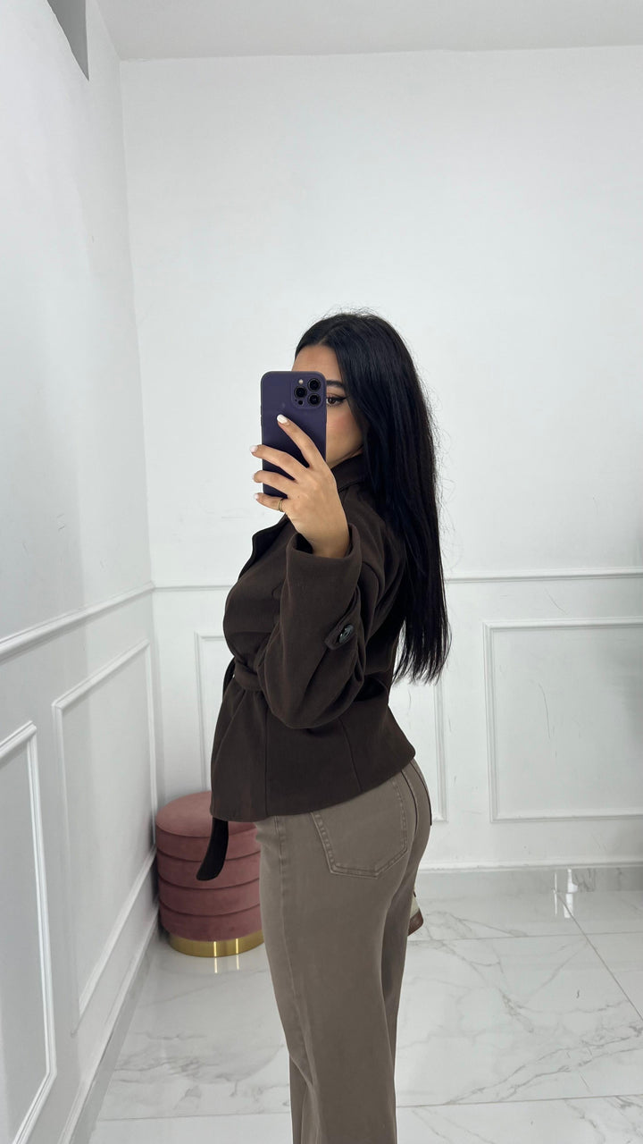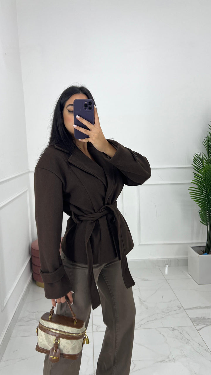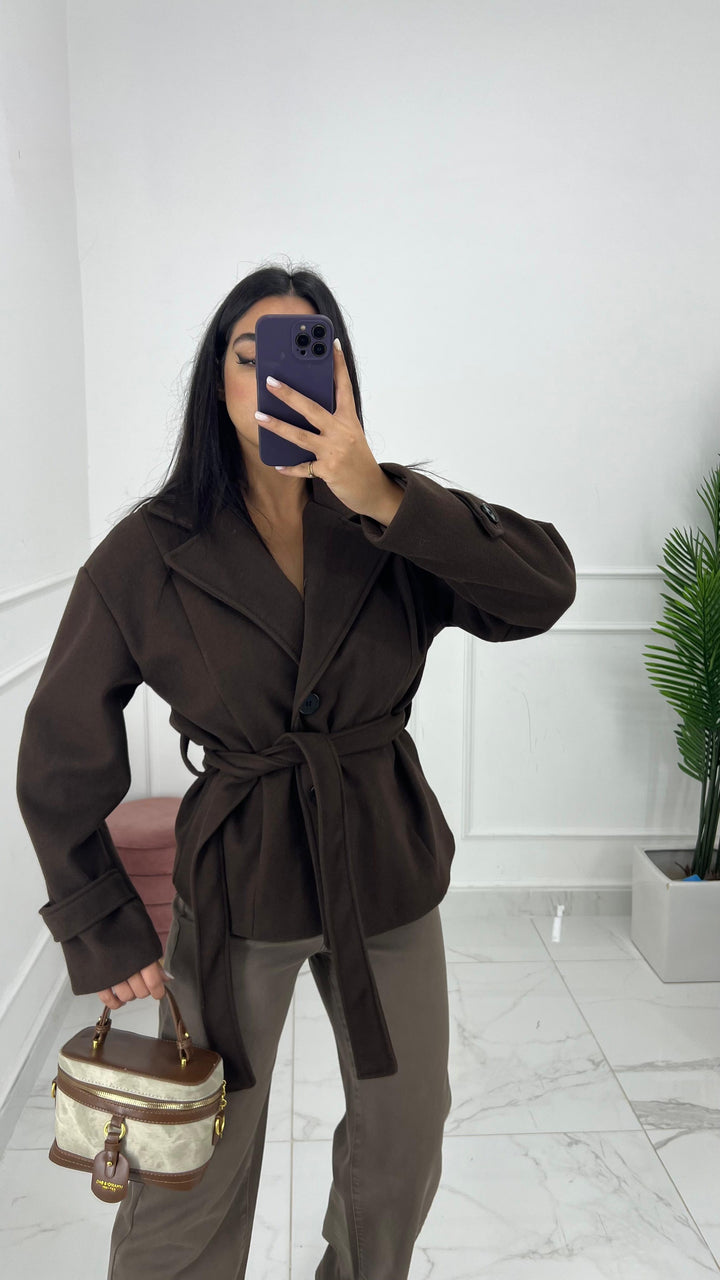 CAPPOTTO CORTO DOPPIO PETTO CON CINTA REMOVIBILE