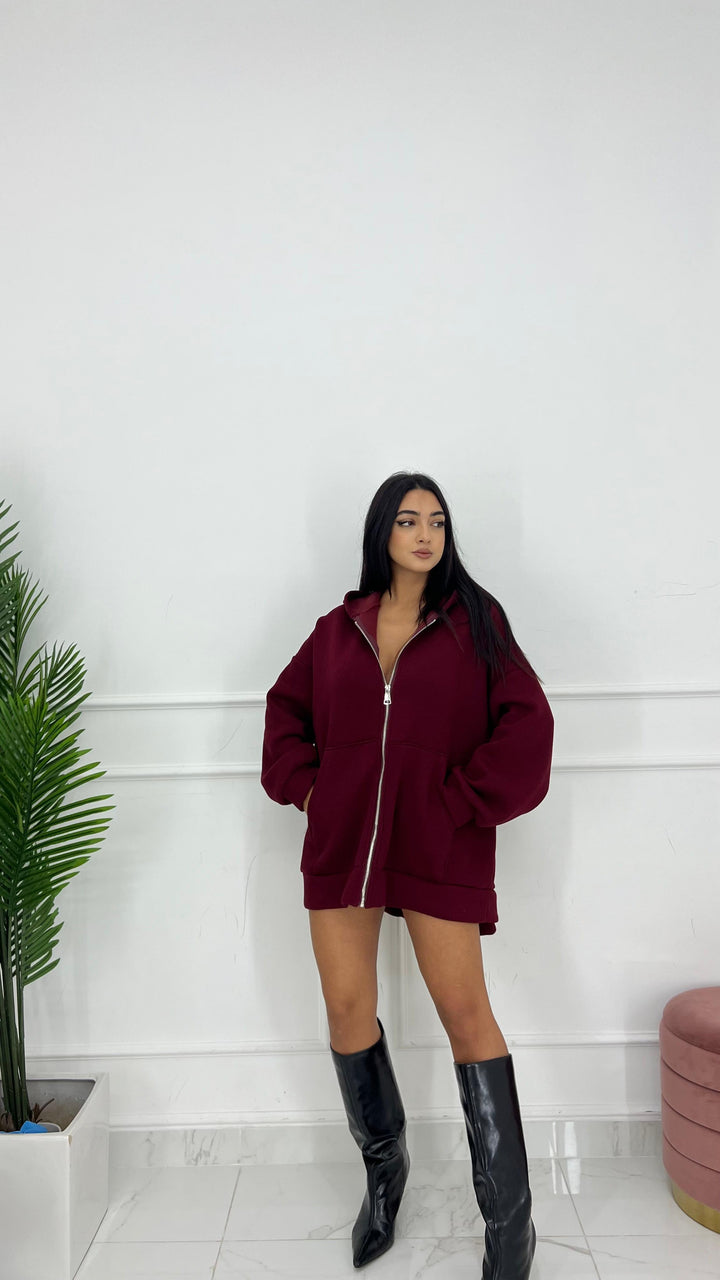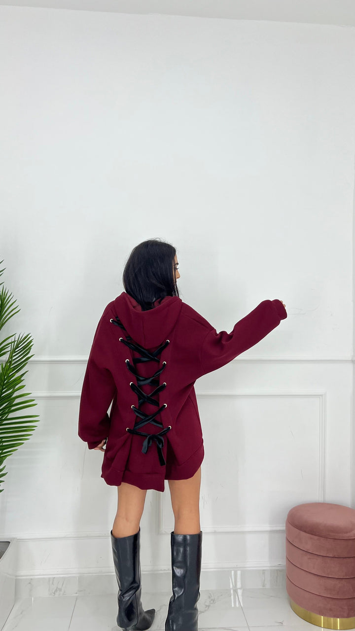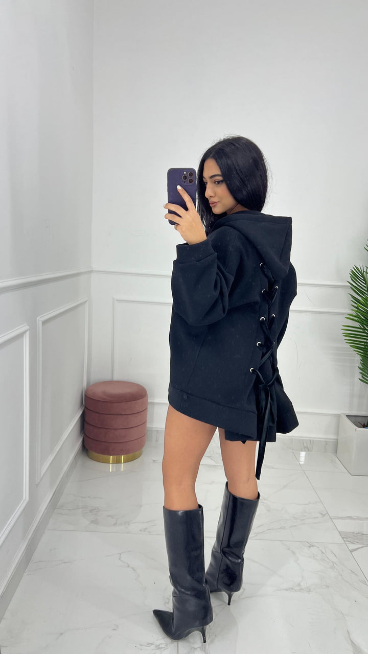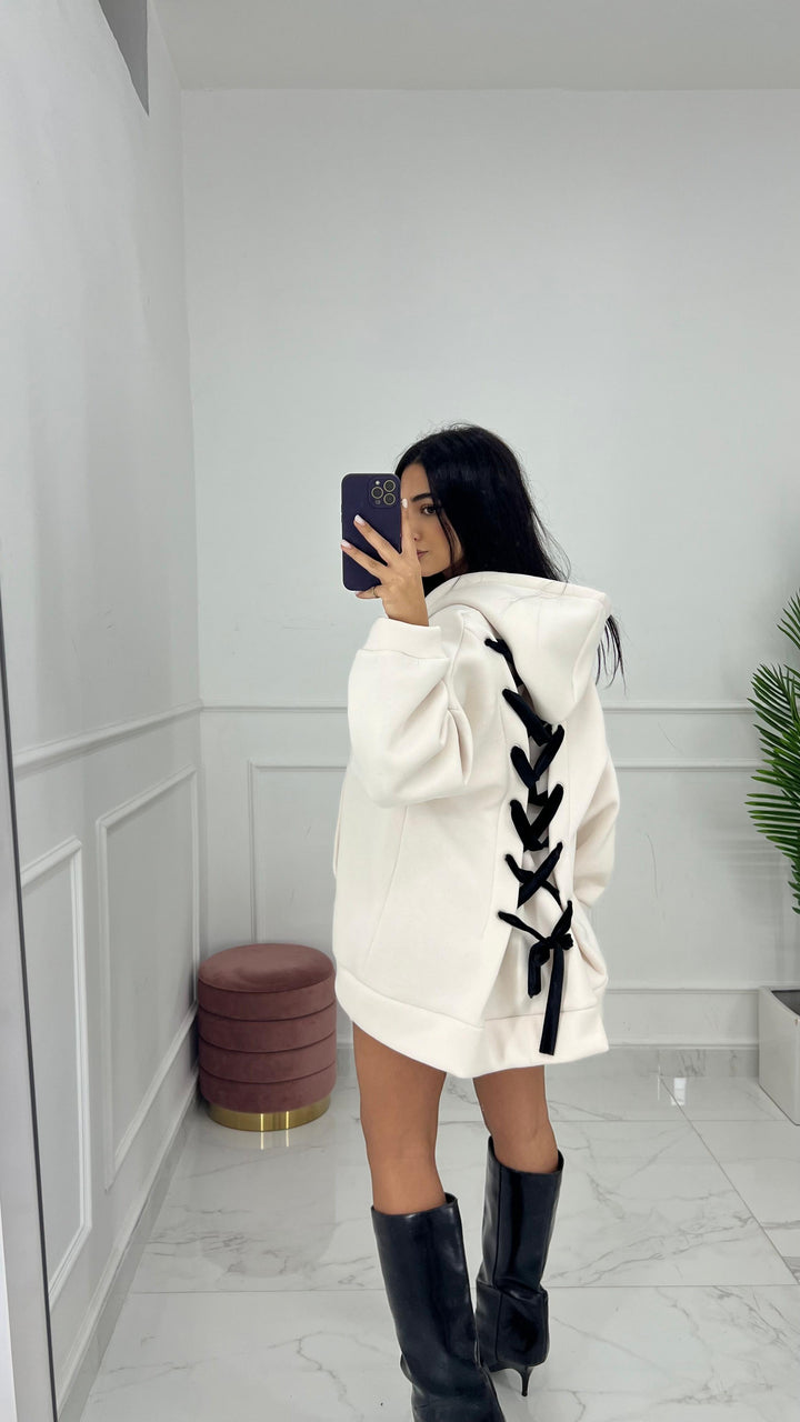 MAXI FELPONE OVER CON CAPPUCCIO E STRINGHE SUL RETRO REGOLABILI