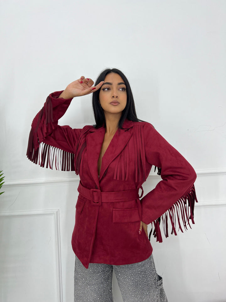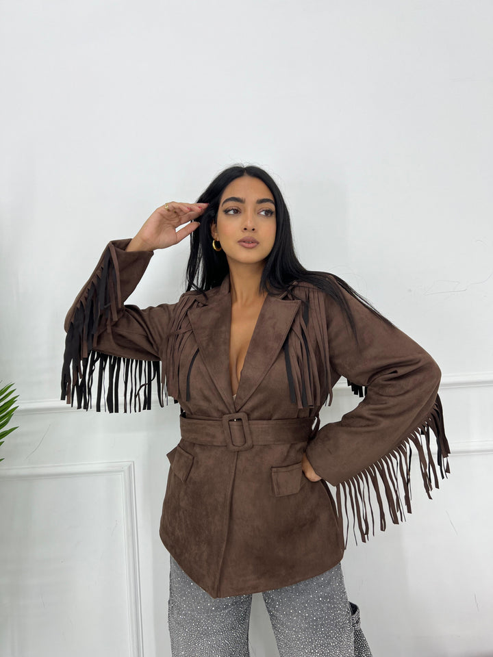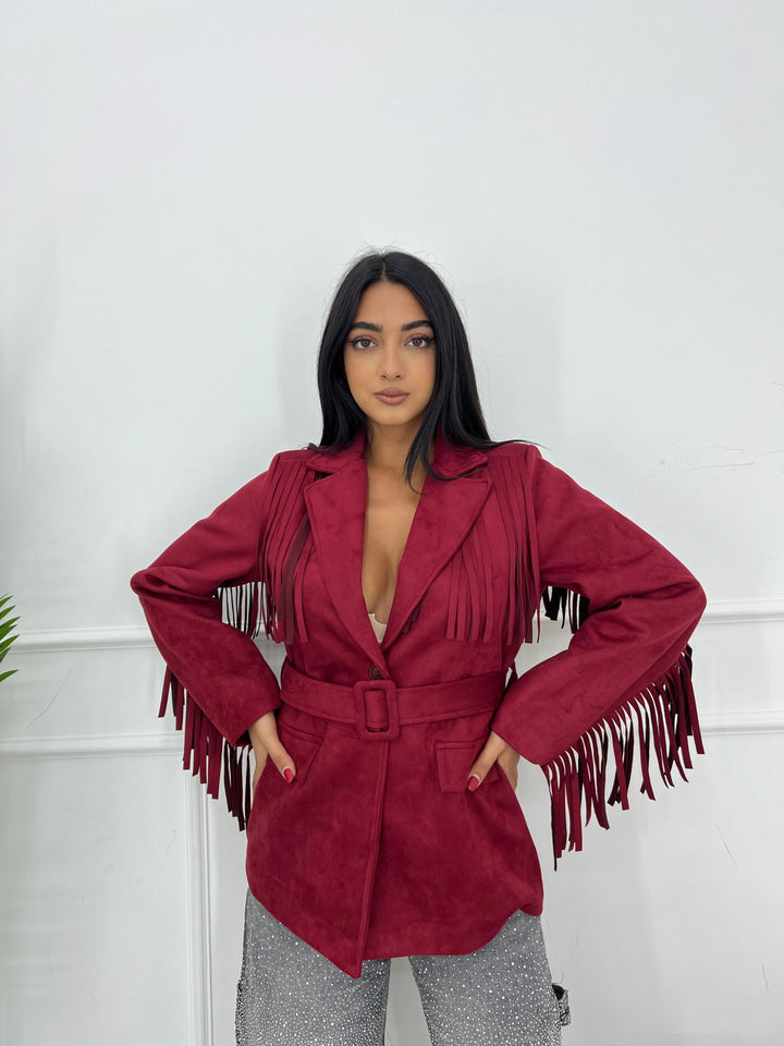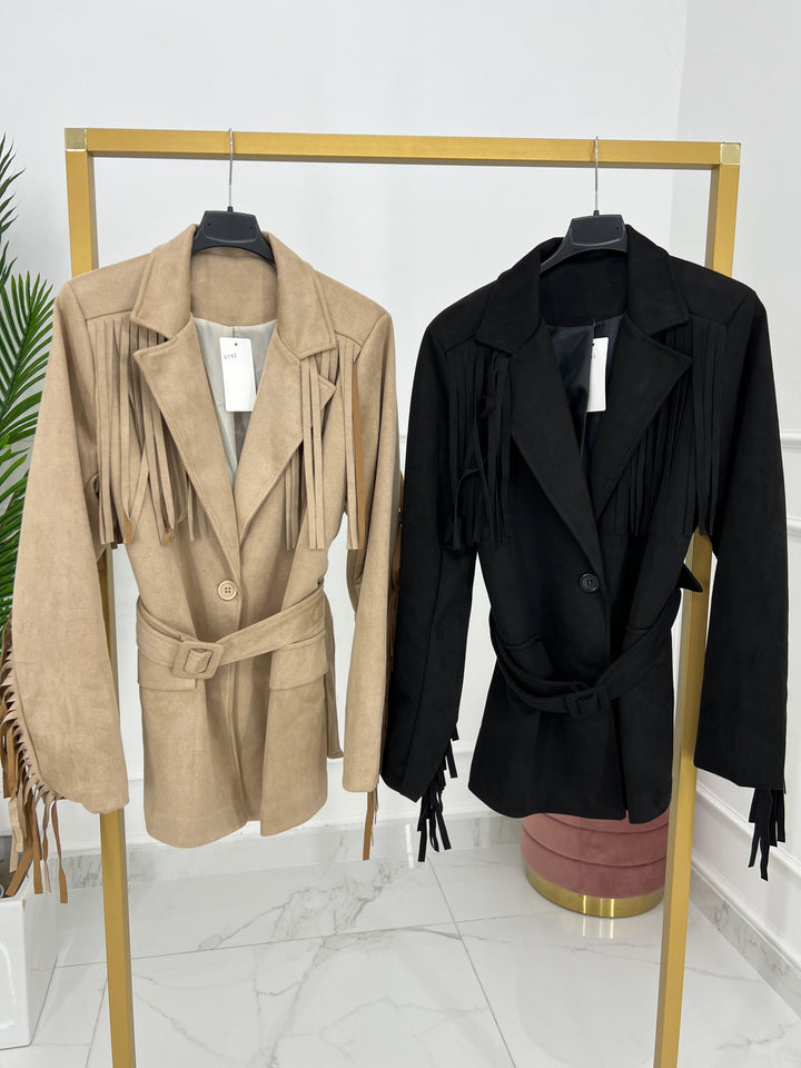 GIACCA IN EFFETTOCAMOSCIO CON FRANGE SUL RETRO