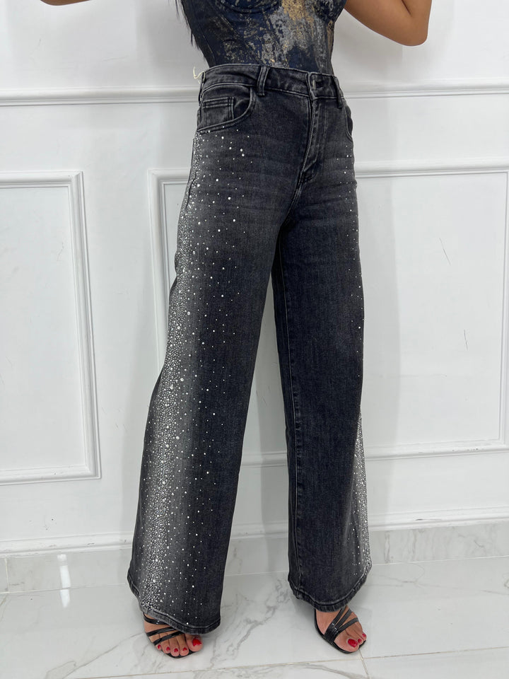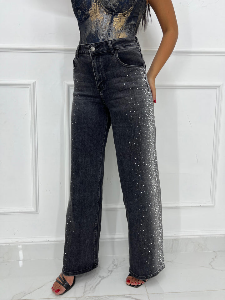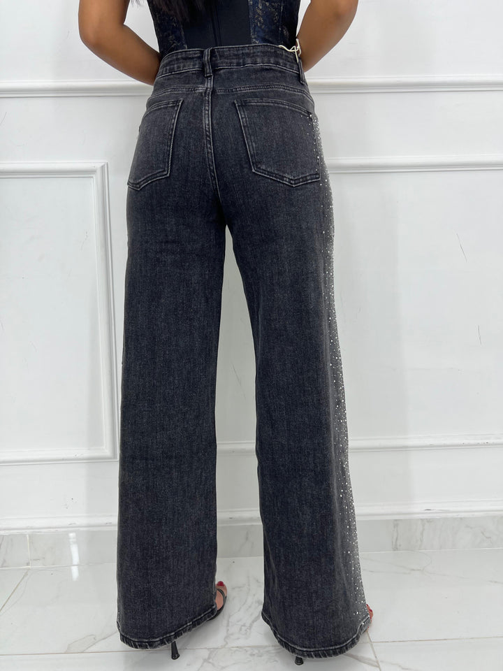 JEANS TOP QUALITY CON BRILLANTINI A RILIEVO LATERALI