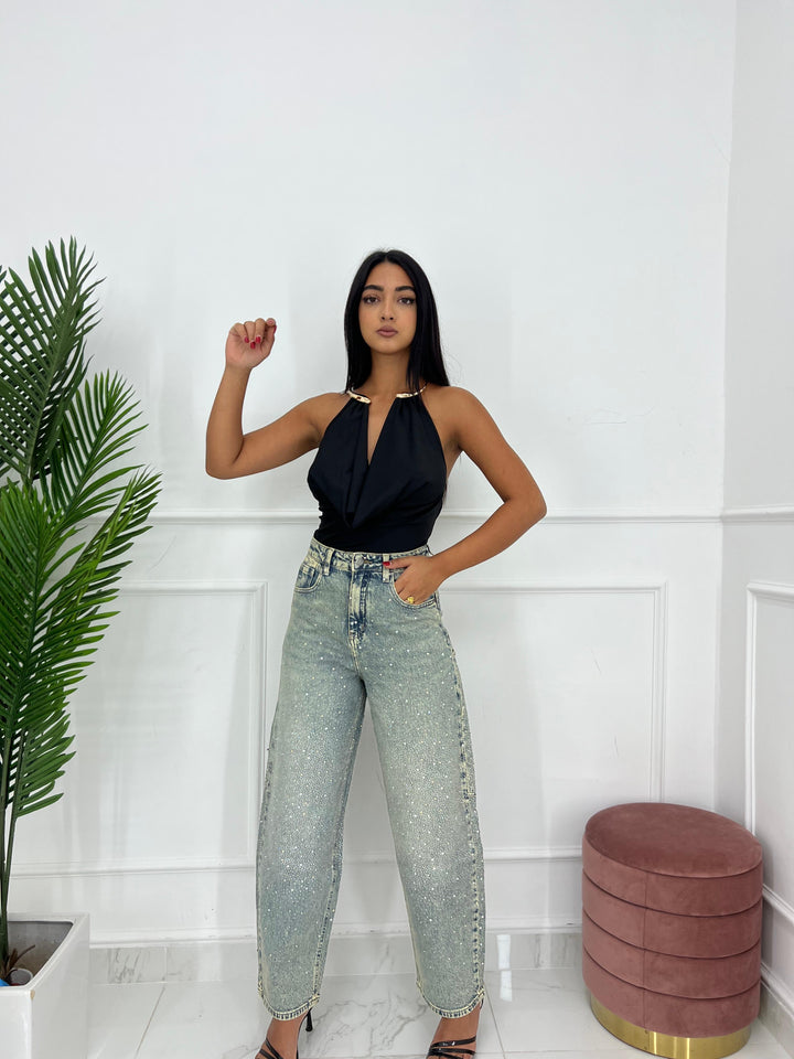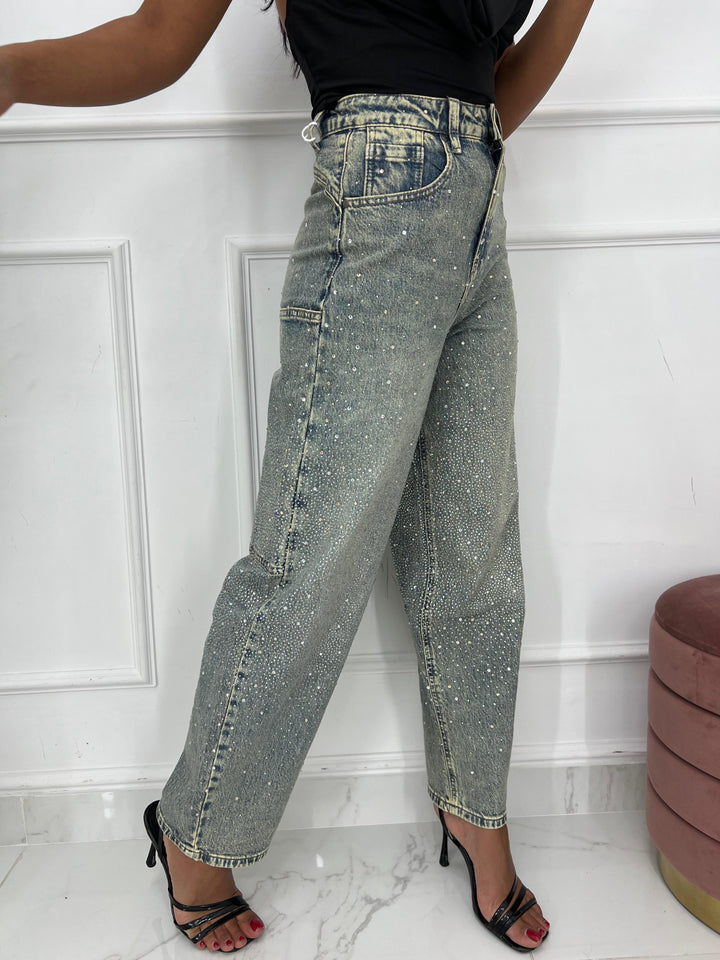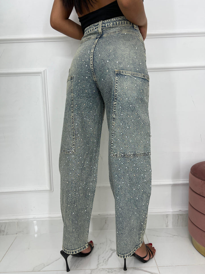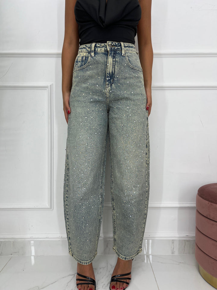 JEANS BAGGY FIT CON BRILLANTINI A RILIEVO EFFETTO VINTAGE