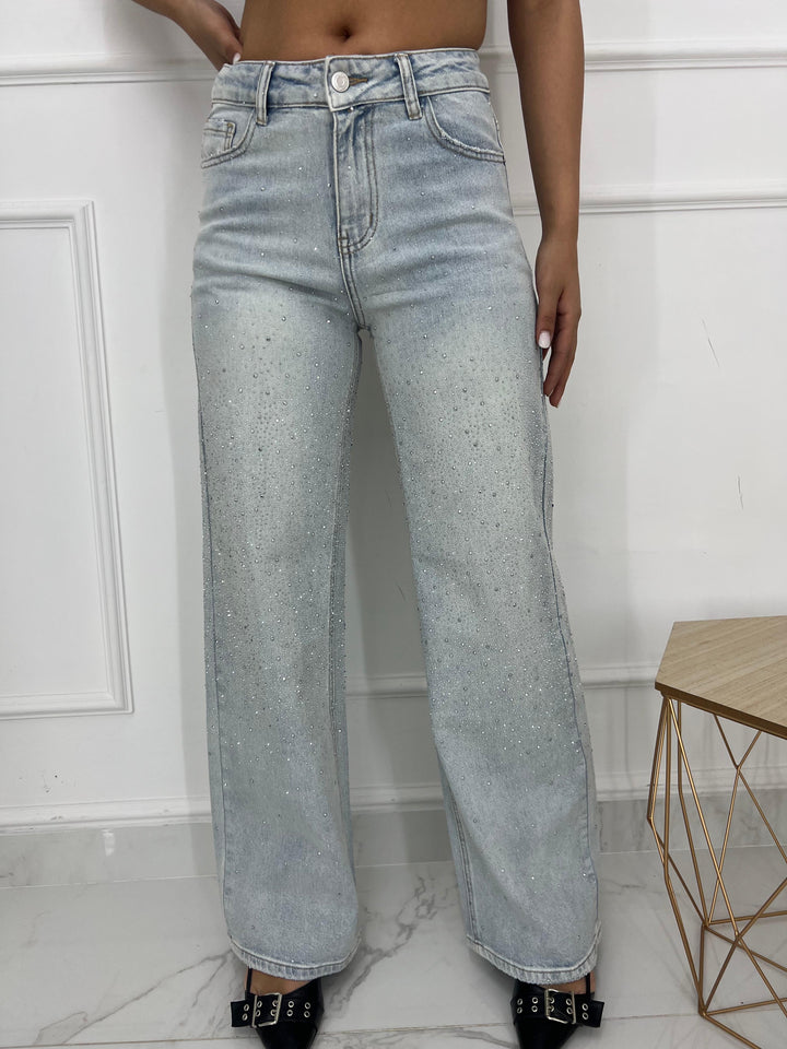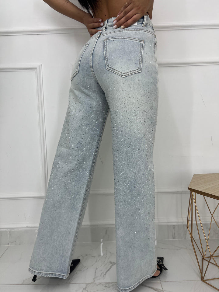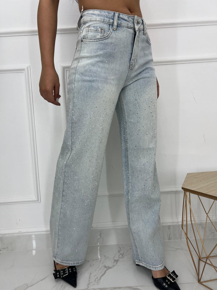 JEANS CON BRILLANTINI A RILIEVO