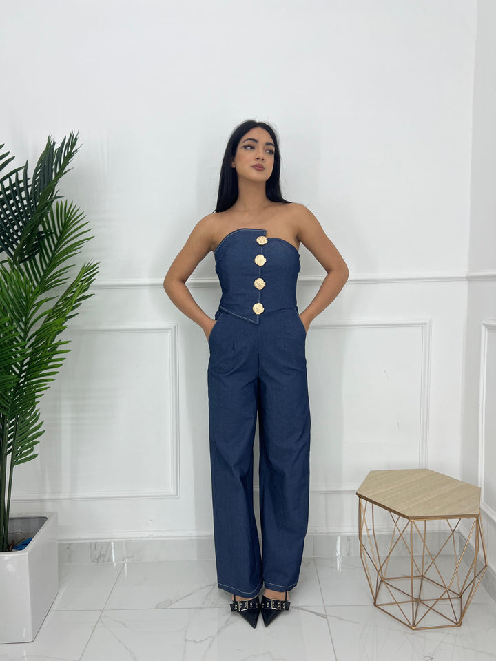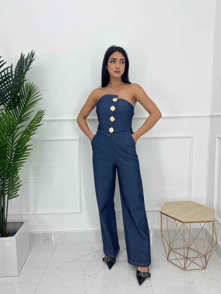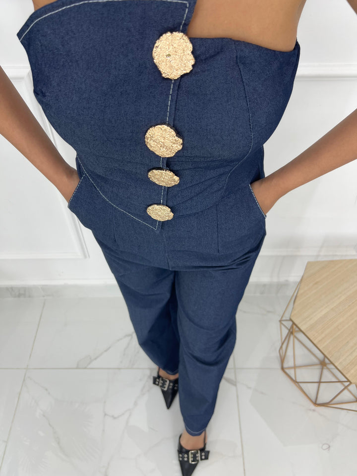 TUTA EFFETTO DENIM CON SPILLE ORO