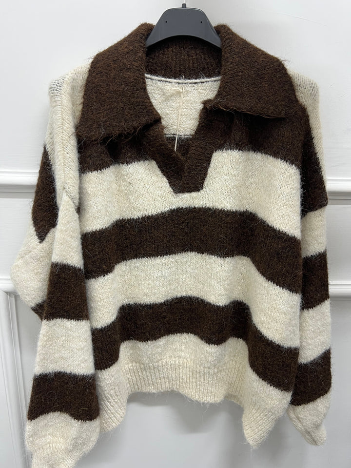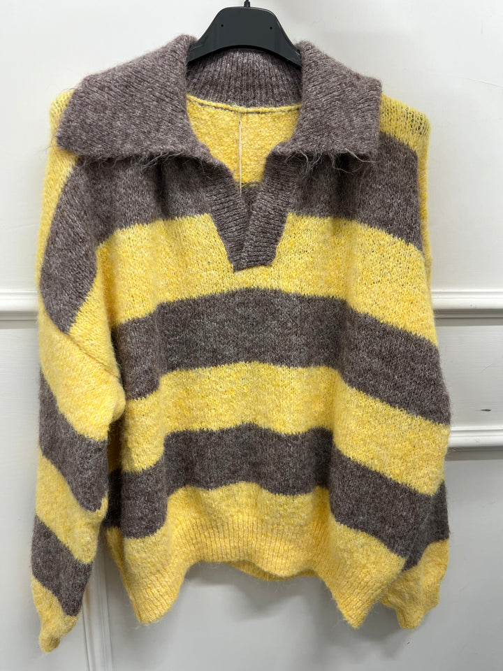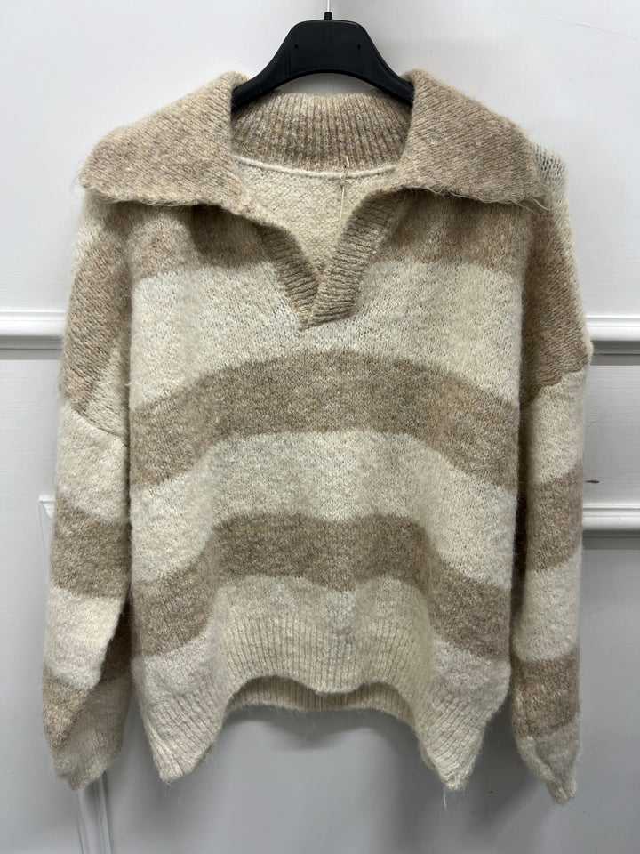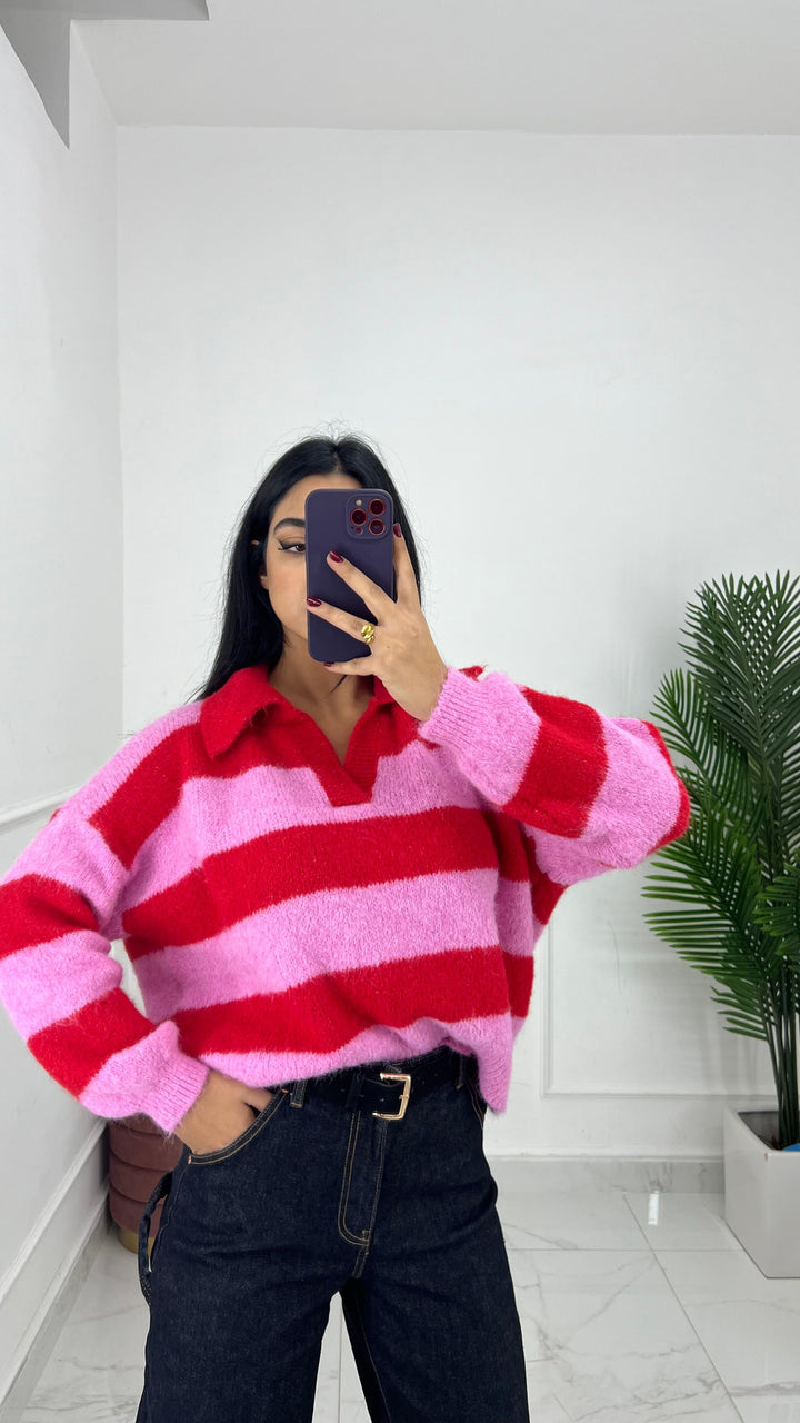 PULL CON COLLETTO SCOLLO A V A RIGHE