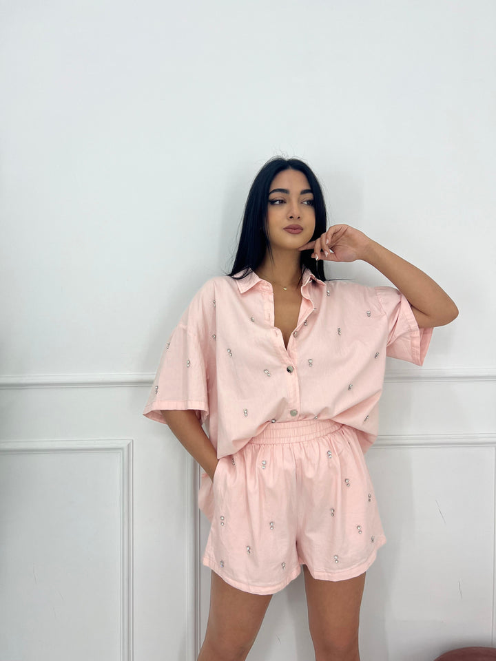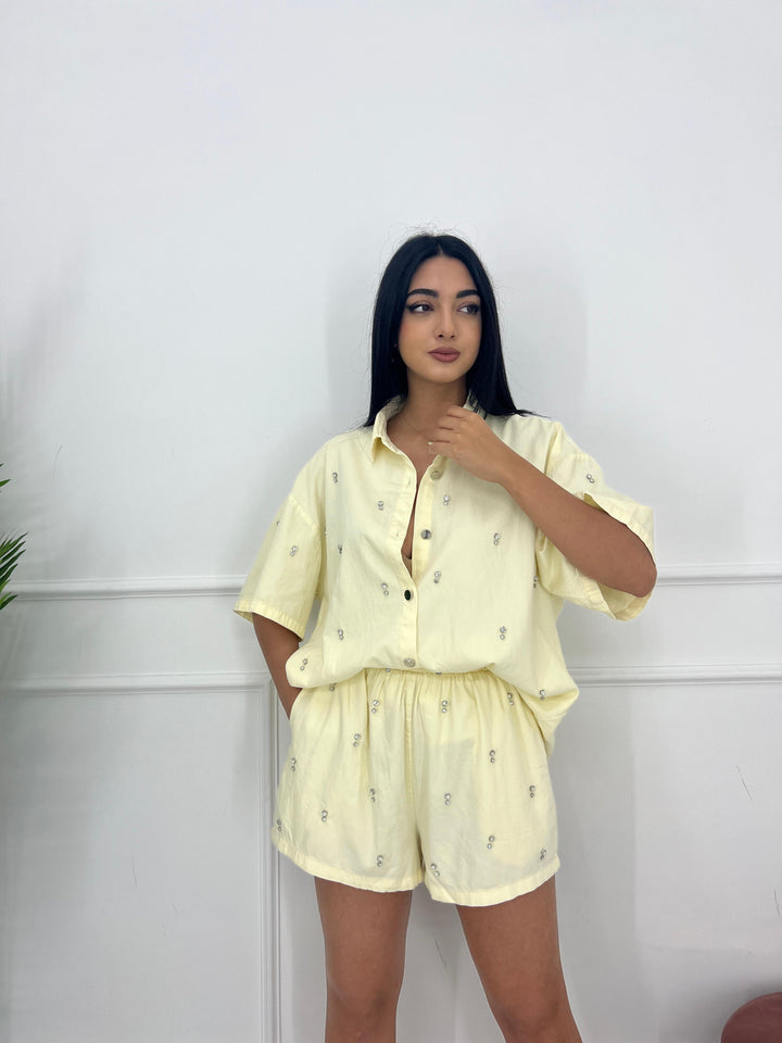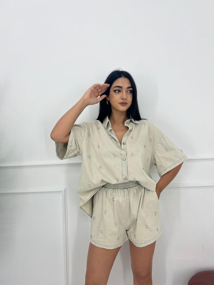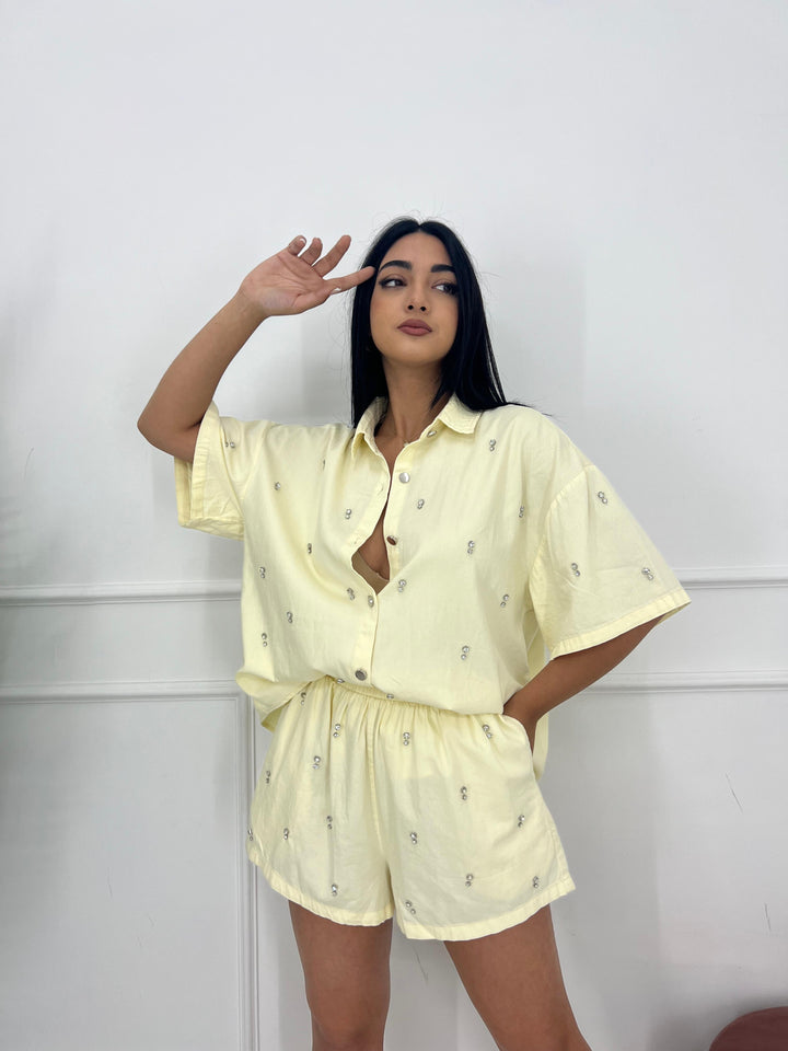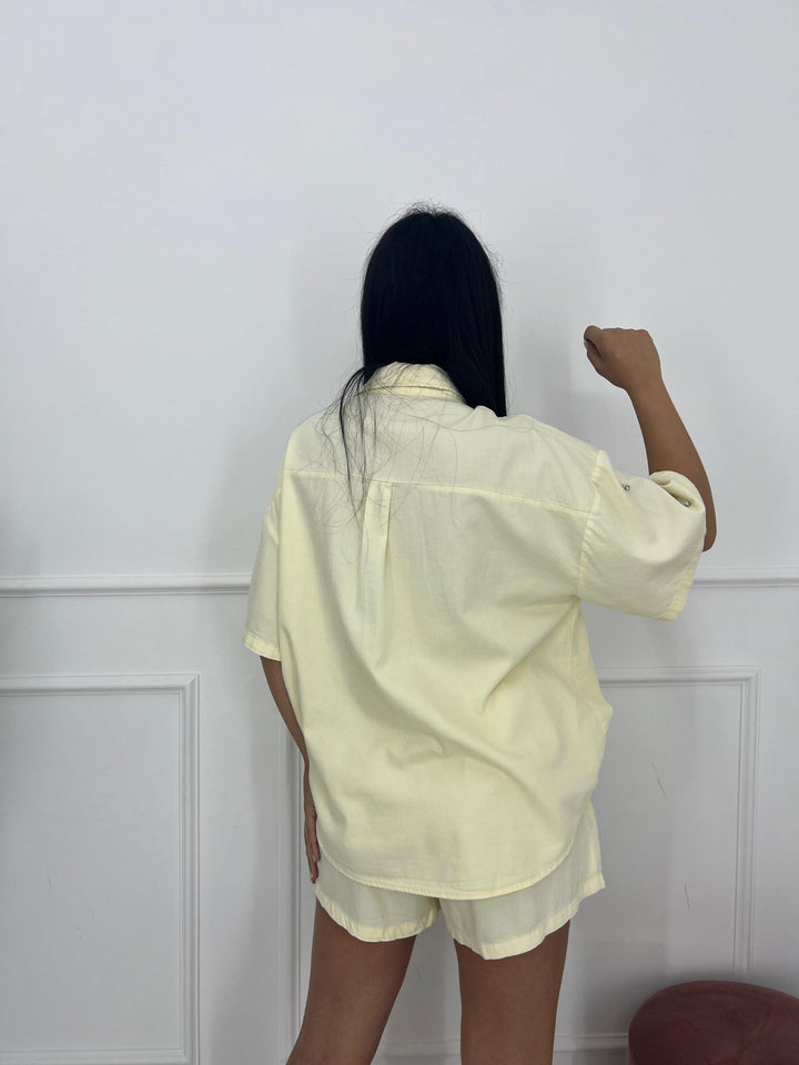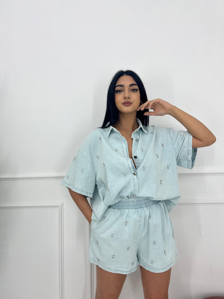 SET IN JEANS PANTALONCINO CON ELASTICO IN VITA E CAMICIA OVER