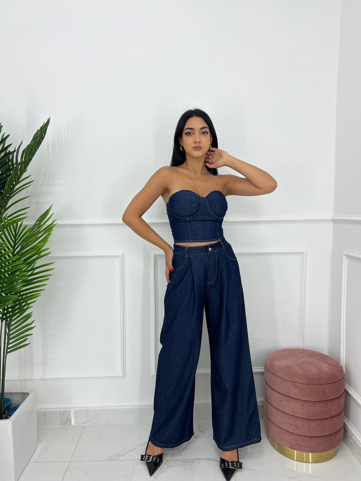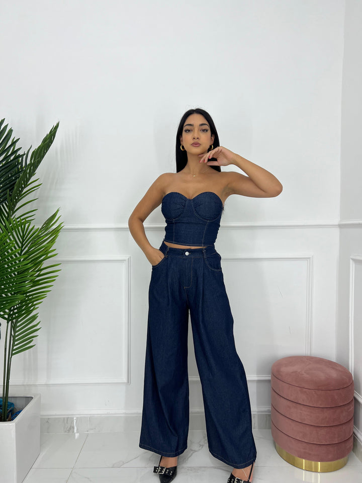 CORD SET TOP E PANTALONE PALAZZO E CORPETTO CON MOLLA SUL RETRO