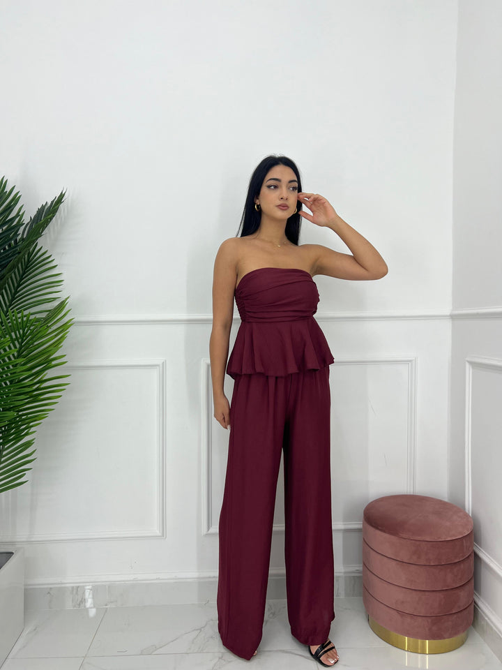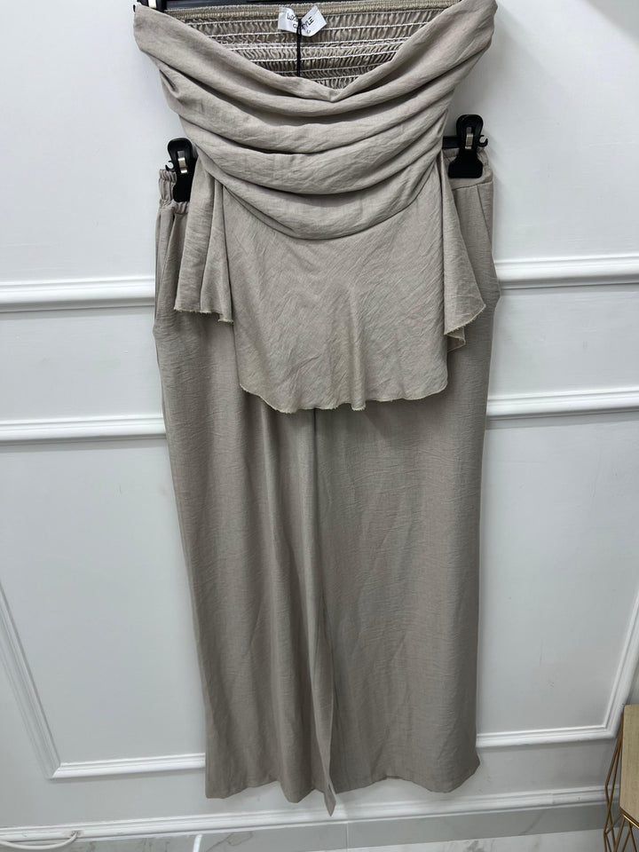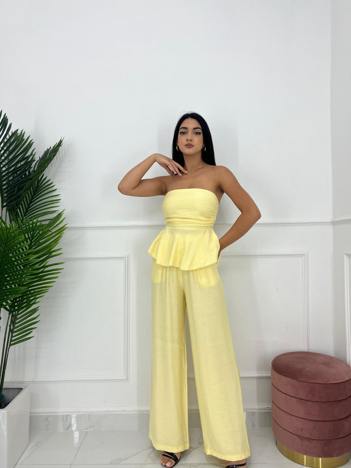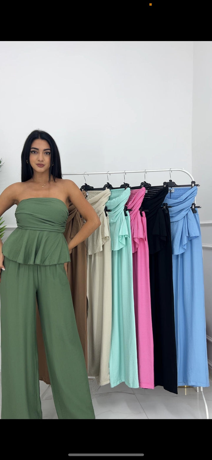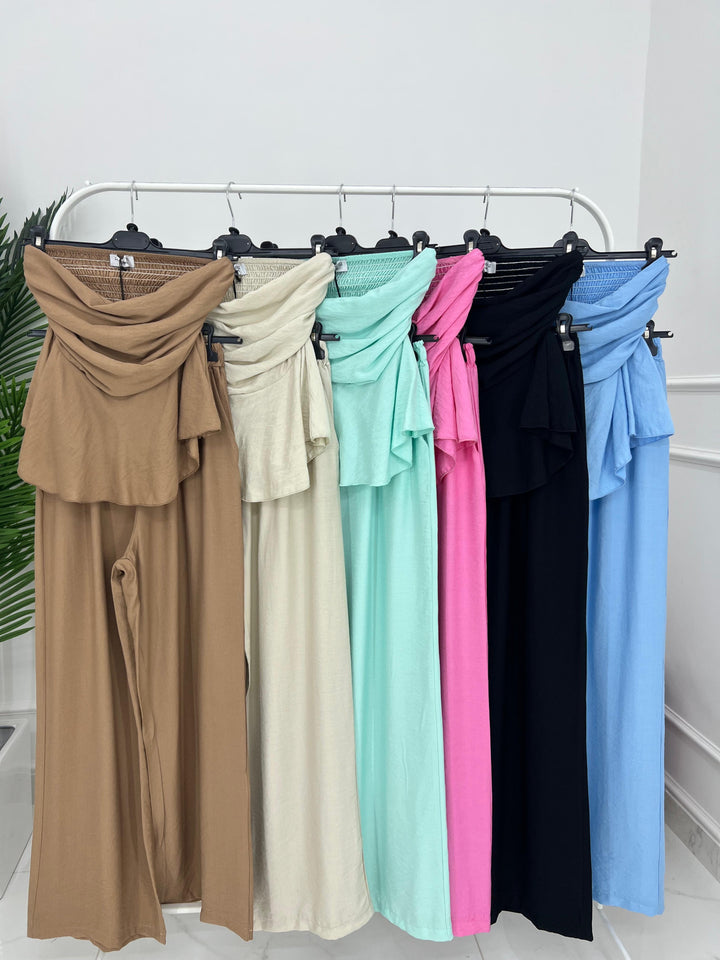 TOP A FASCIA CON ELASTICO SUL RETRO E PANTALONE CON MOLLA