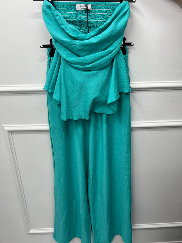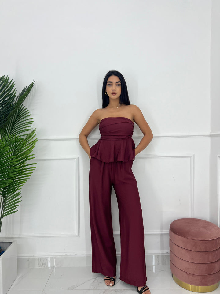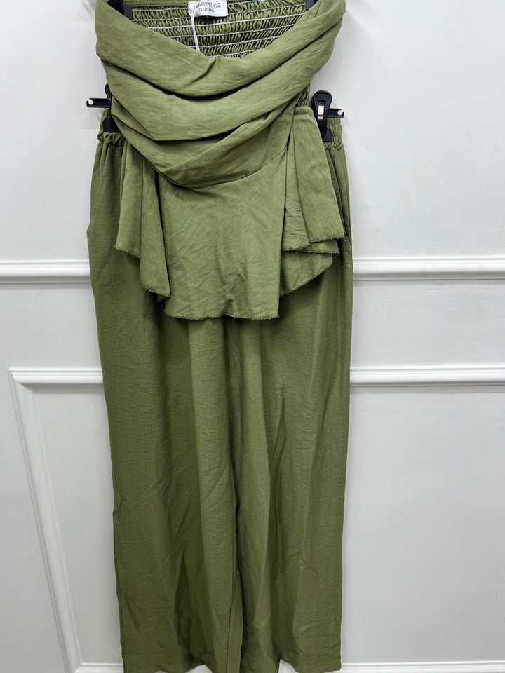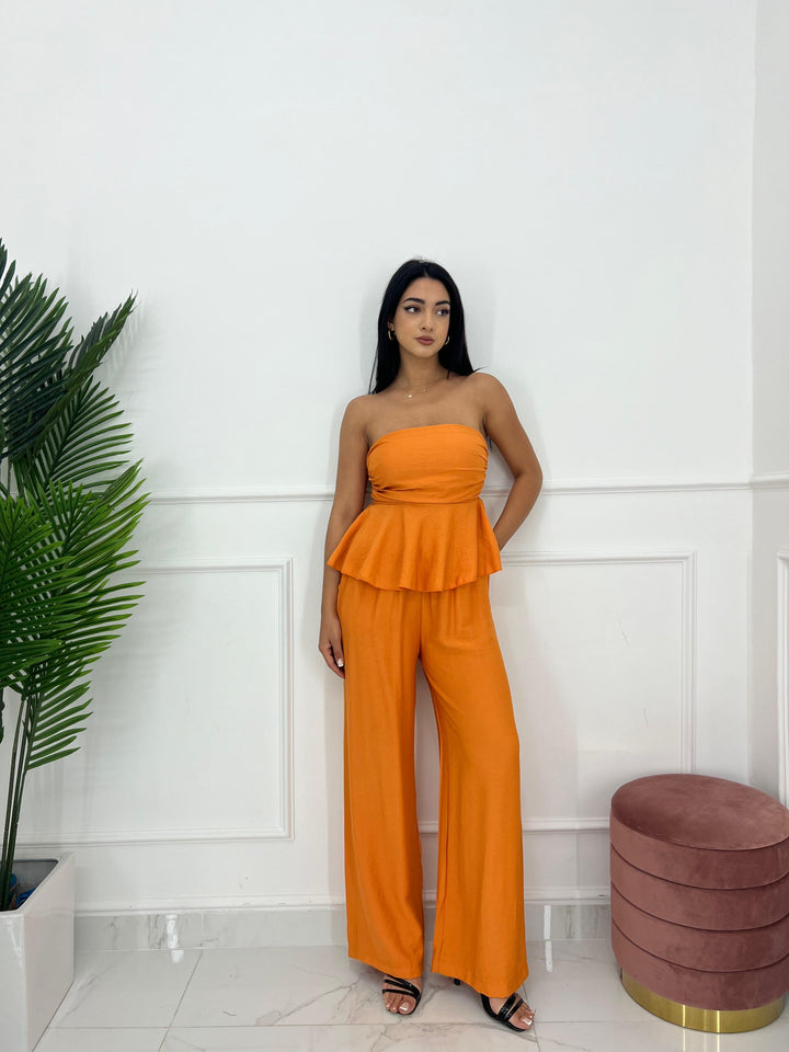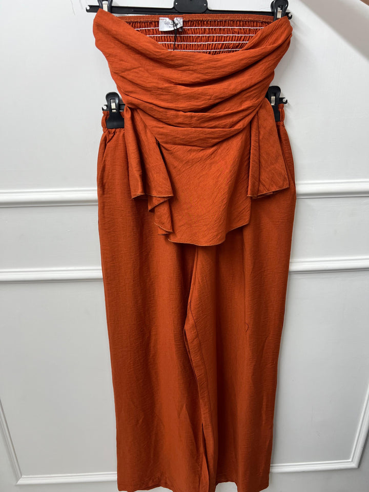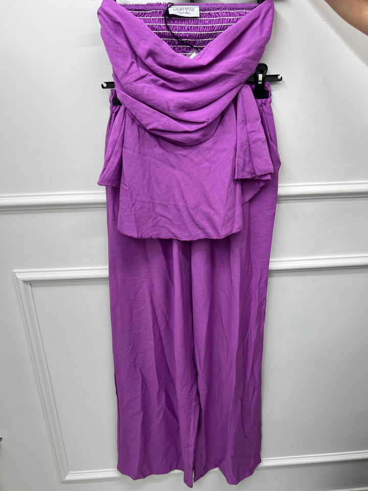TOP A FASCIA CON ELASTICO SUL RETRO E PANTALONE CON MOLLA