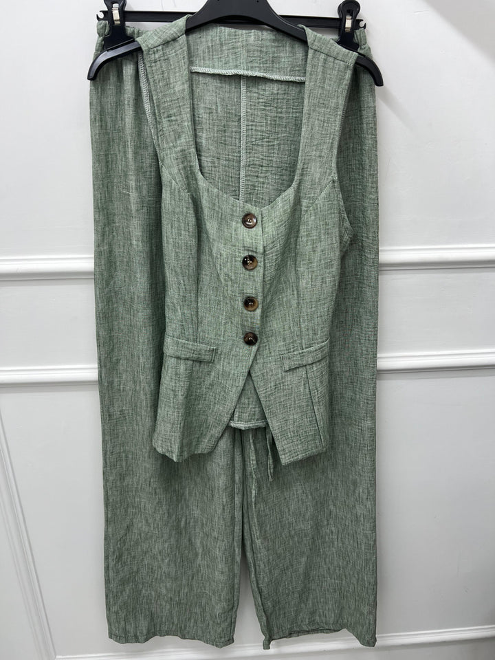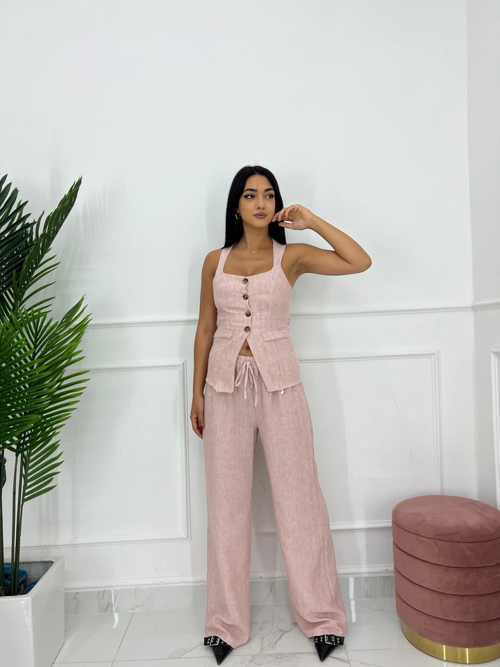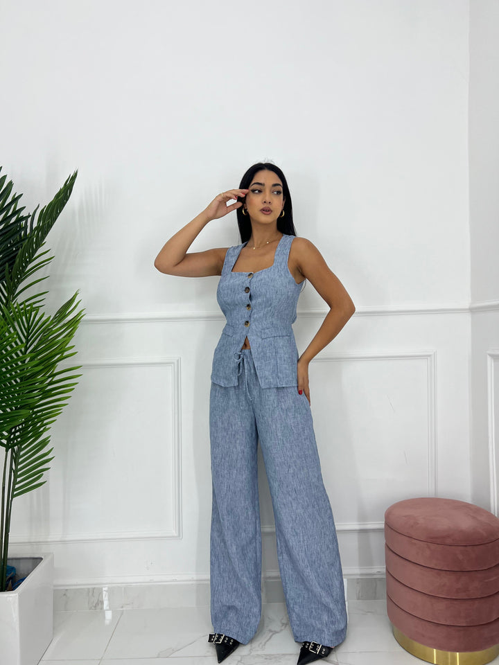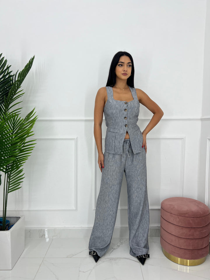 CORD SET PANTALONE PALAZZO CON MOLLA E GIET CON BOTTONCINI