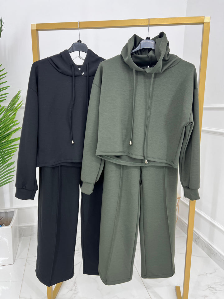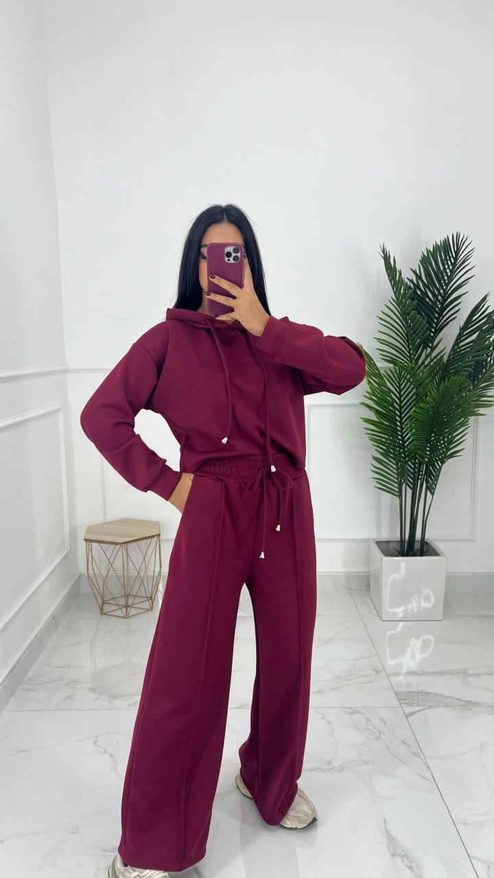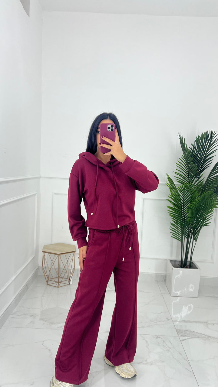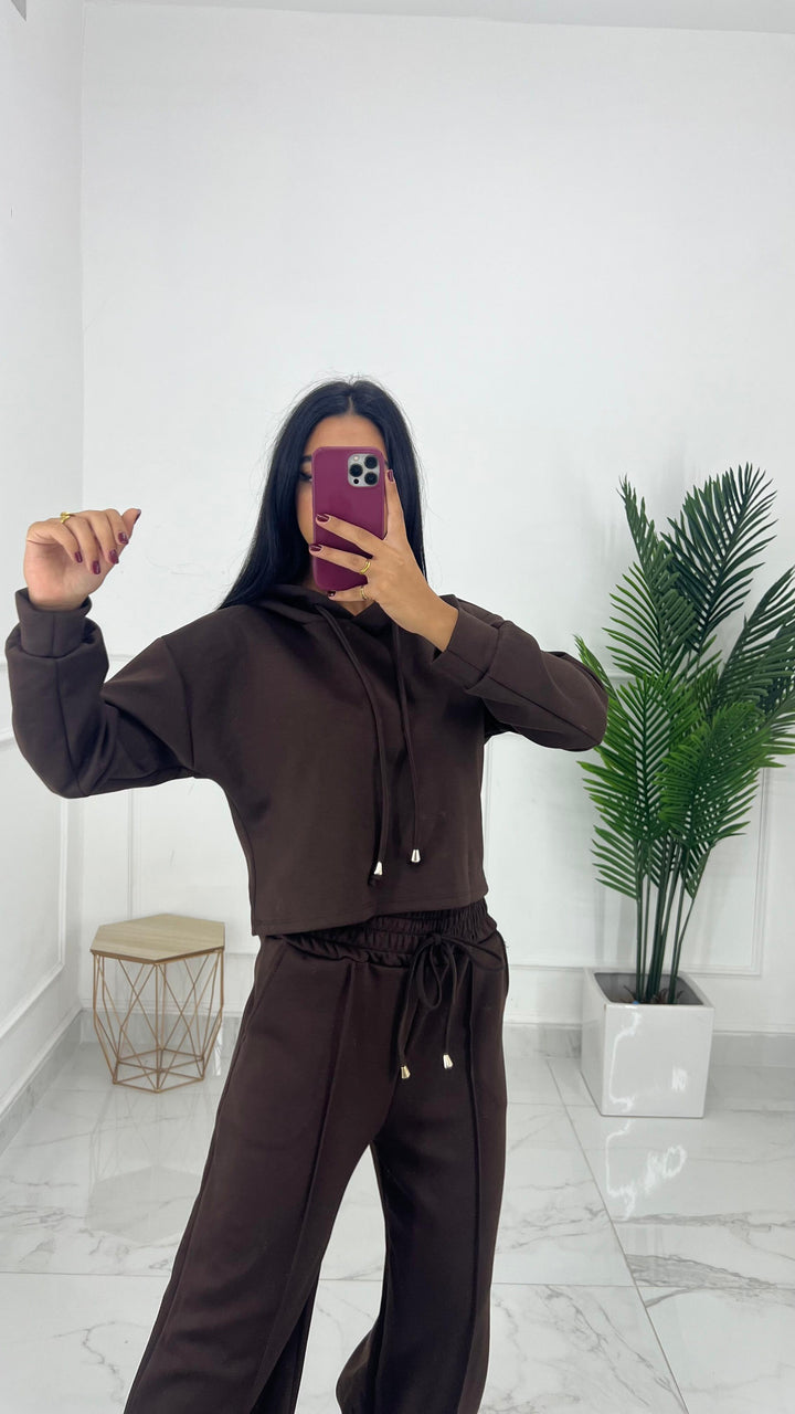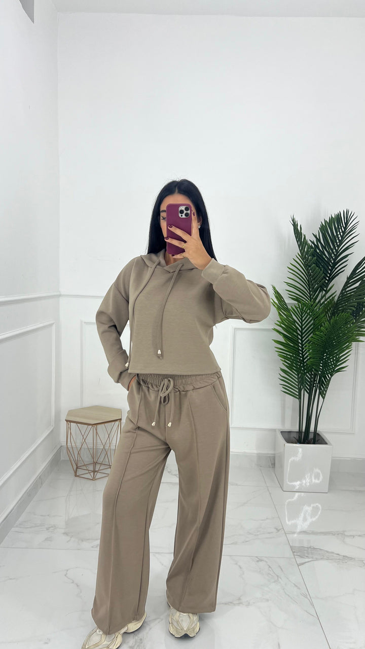 FELPA CROP CON CAPPUCCIO E PANTALONE PALAZZO CON ELASTICO IN VITA E COULISSE REGOLABILI