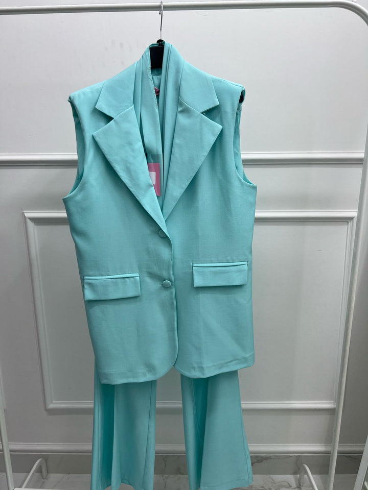 SET PANTALONE A ZAMPA E GIACCA SMANICATA CON FUSCIACCA REMOVIBILE