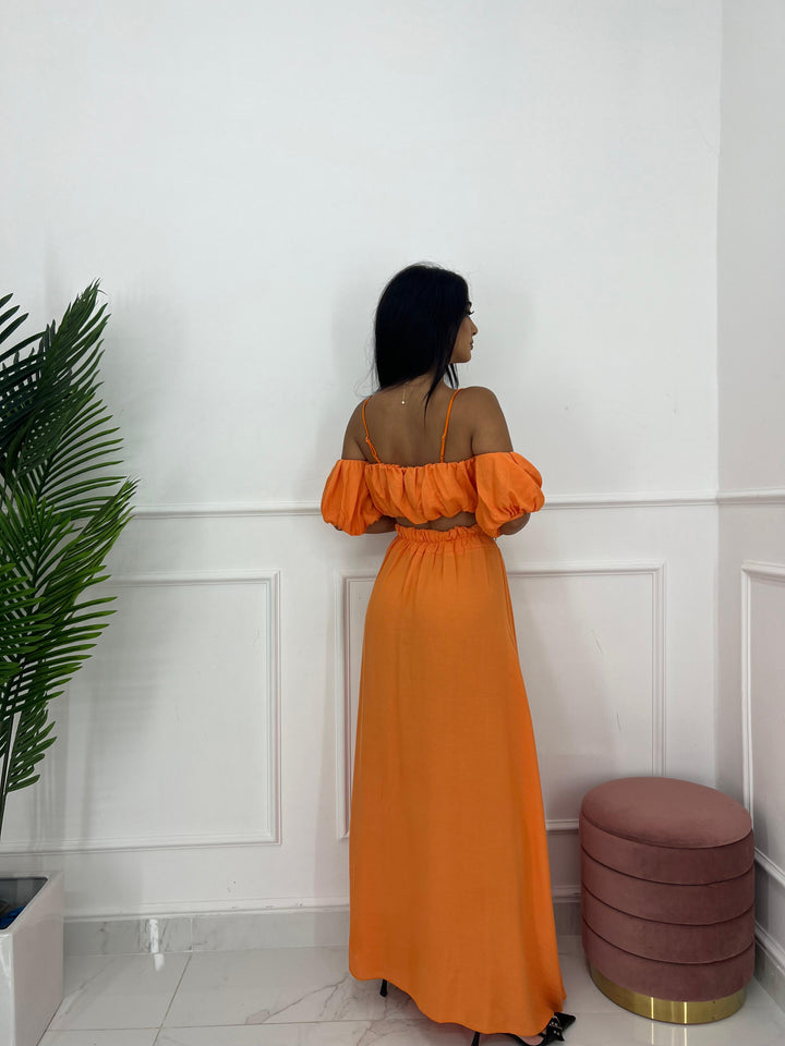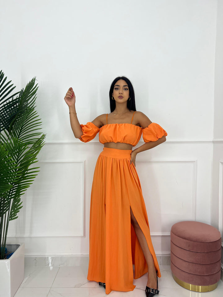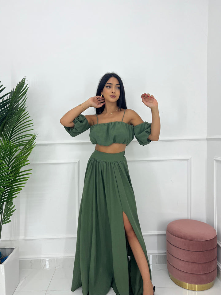 CORD SET GONNA LUNGA CON SPACCHI LATERALI E TOP CROP A FASCIA
