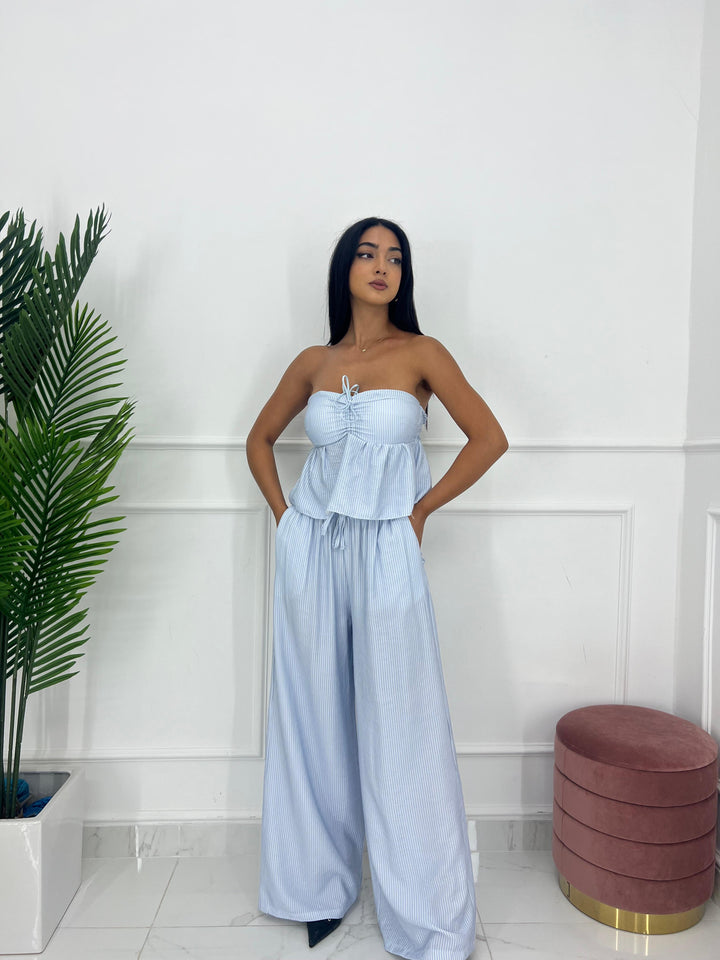 SET GESSATO CON PANTALONE PALAZZO ED ELASTICO IN VITA
