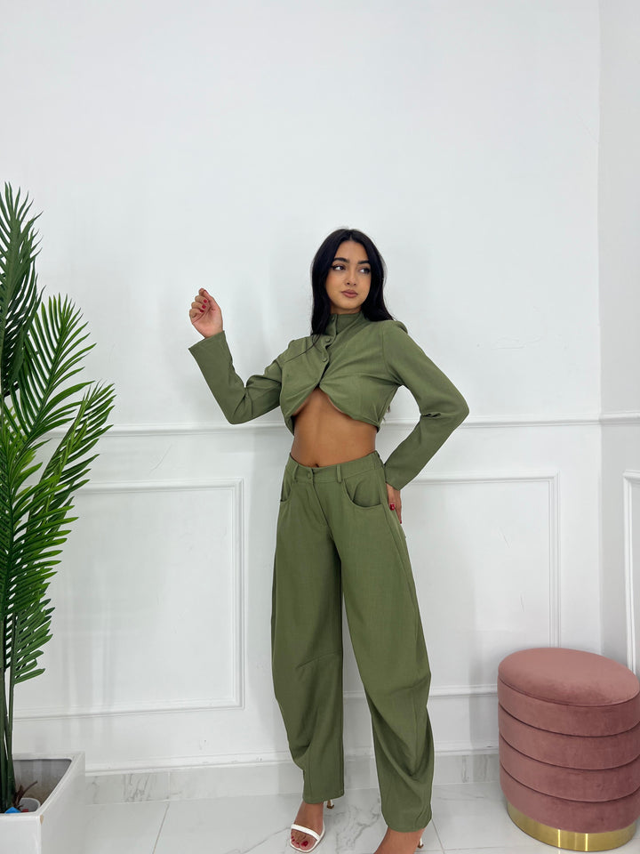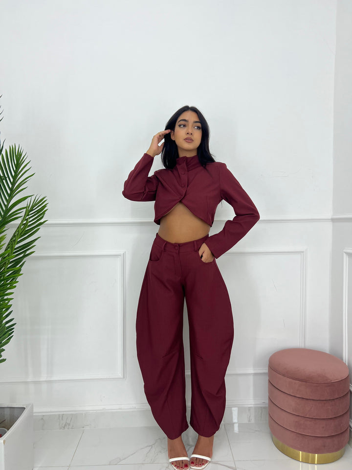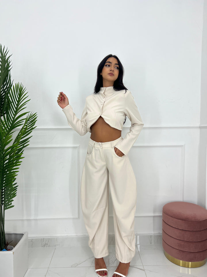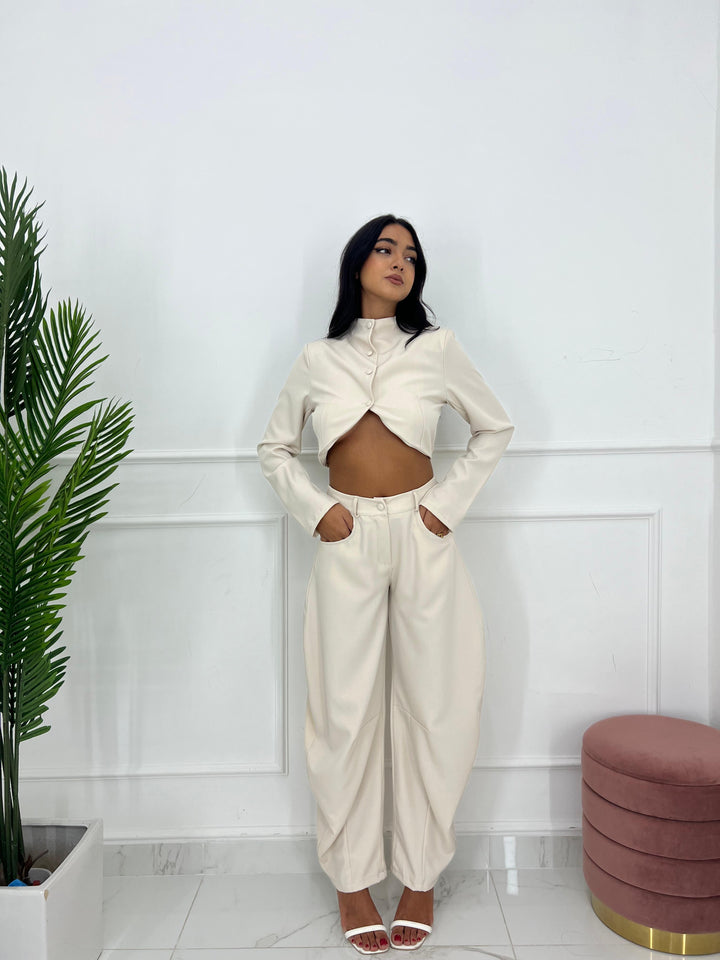 PANTALONE BALLOON CON ELASTICO SUL RETRO E GIACCA CROP