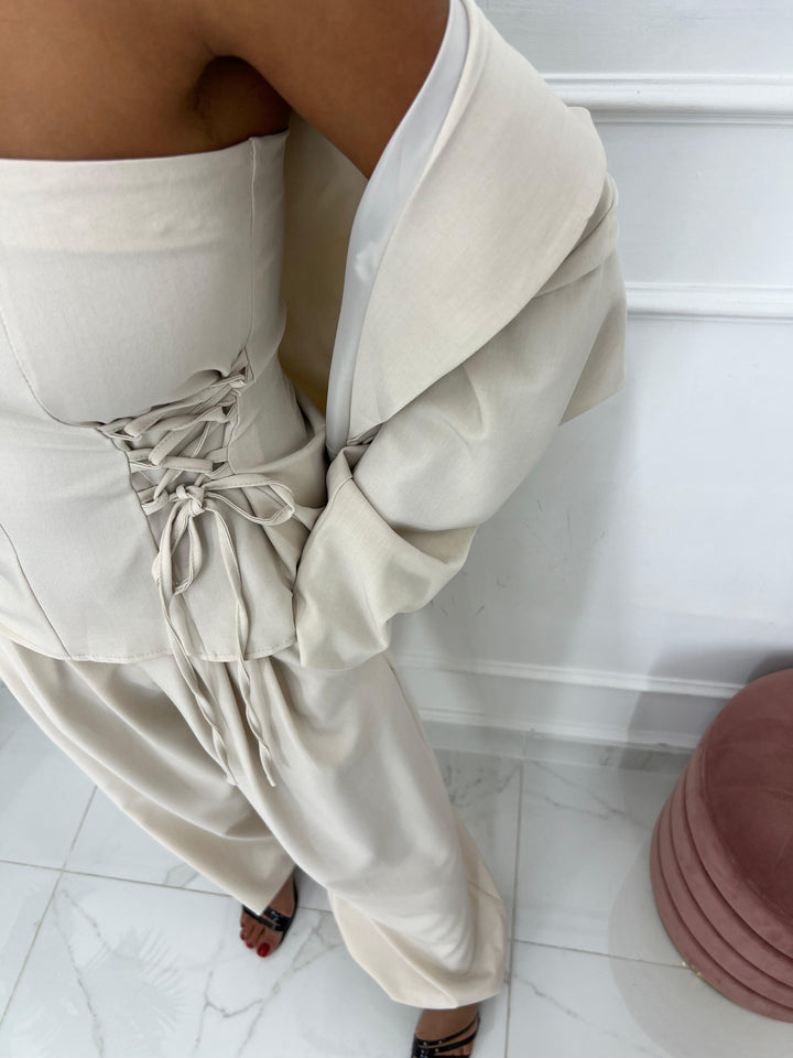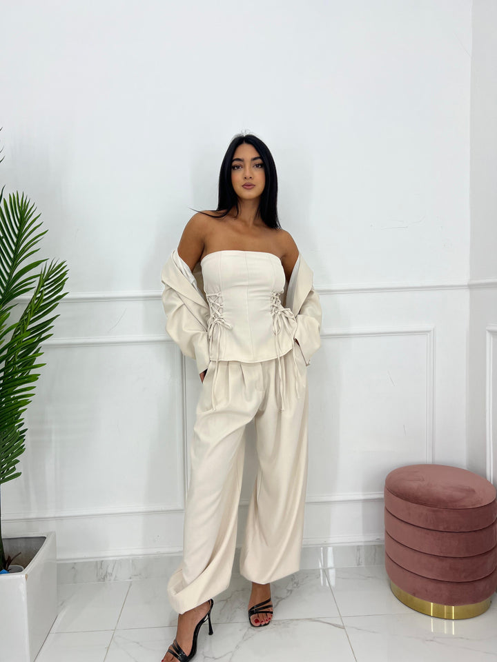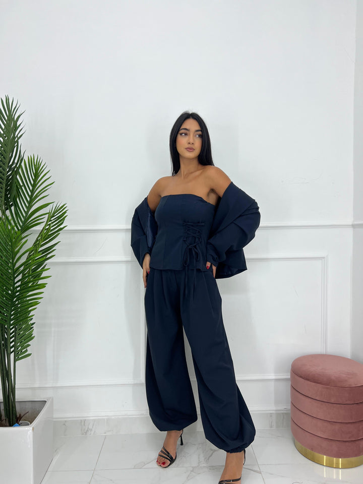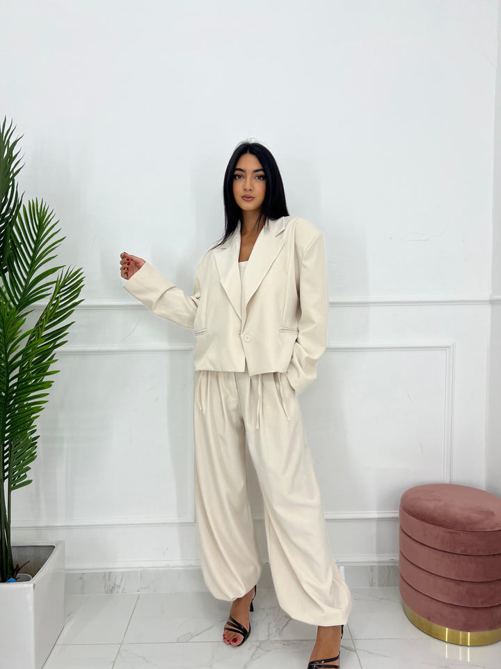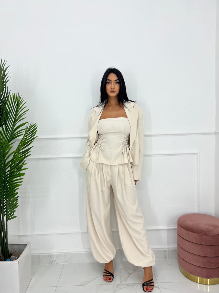 GIACCA CON BUSTINO E PANTALONE CON MOLLA SUL FONDO