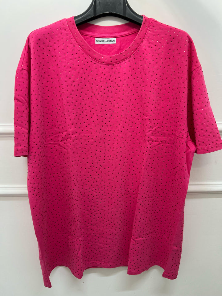 T-SHIRT OVER SIZE CON BRILLANTINI A RILIEVO