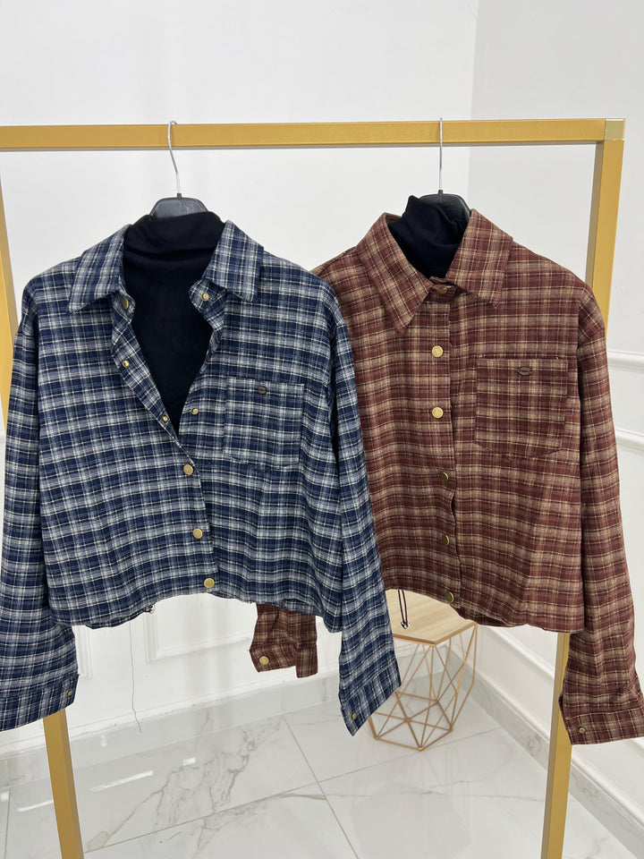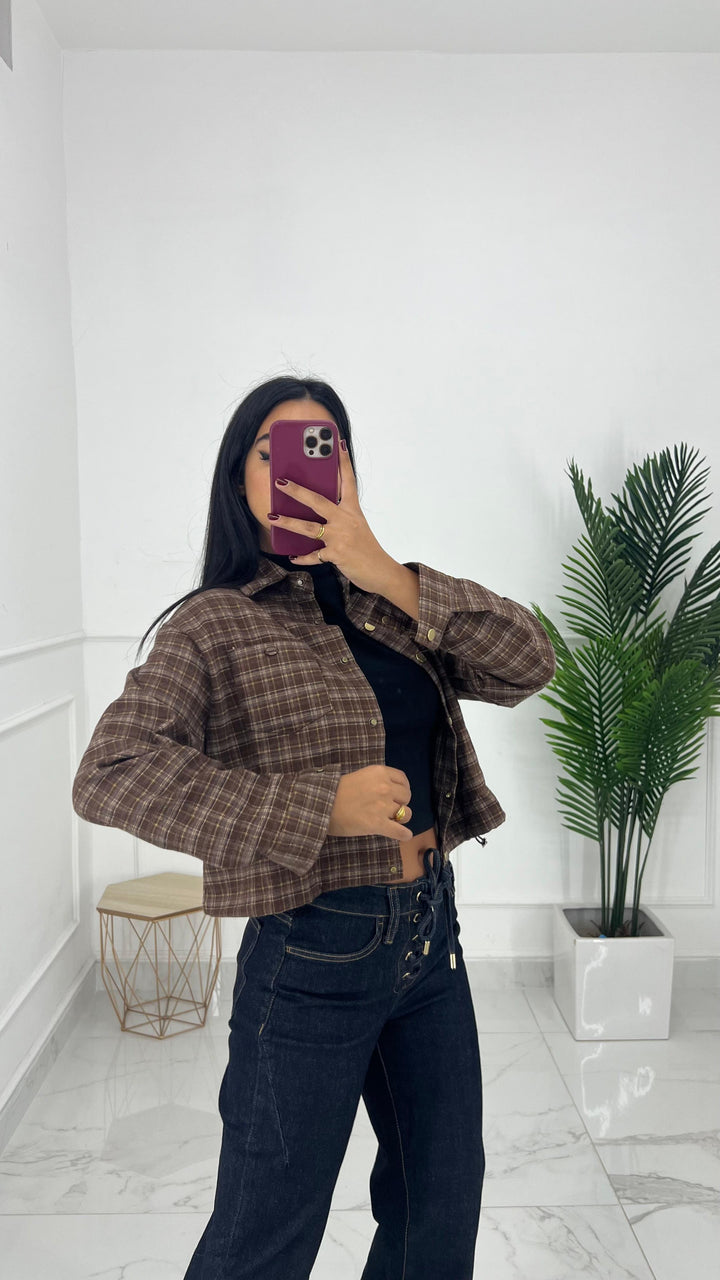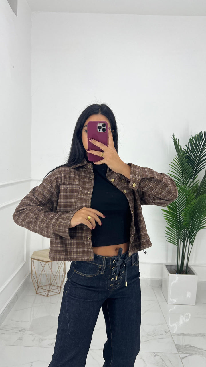 TWINS COMPOSTO DA GIACCA A QUADRI CROP E CANOTTA REMOVIBILE